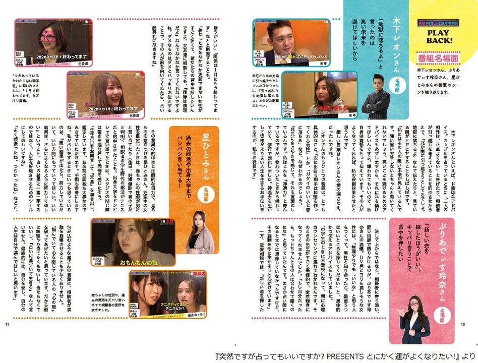 番組に登場するスゴ腕占い師・木下レオン、ぷりあでぃす玲奈、星ひとみ監修による「読むだけで運がよくなる占いムック」。