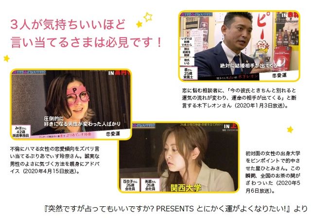 そんな本番組の公式本『突然ですが占ってもいいですか? PRESENTS とにかく運がよくなりたい!』(扶桑社刊)は9月16日に発売され、2ヶ月で17万部突破のベストセラーとなっている。