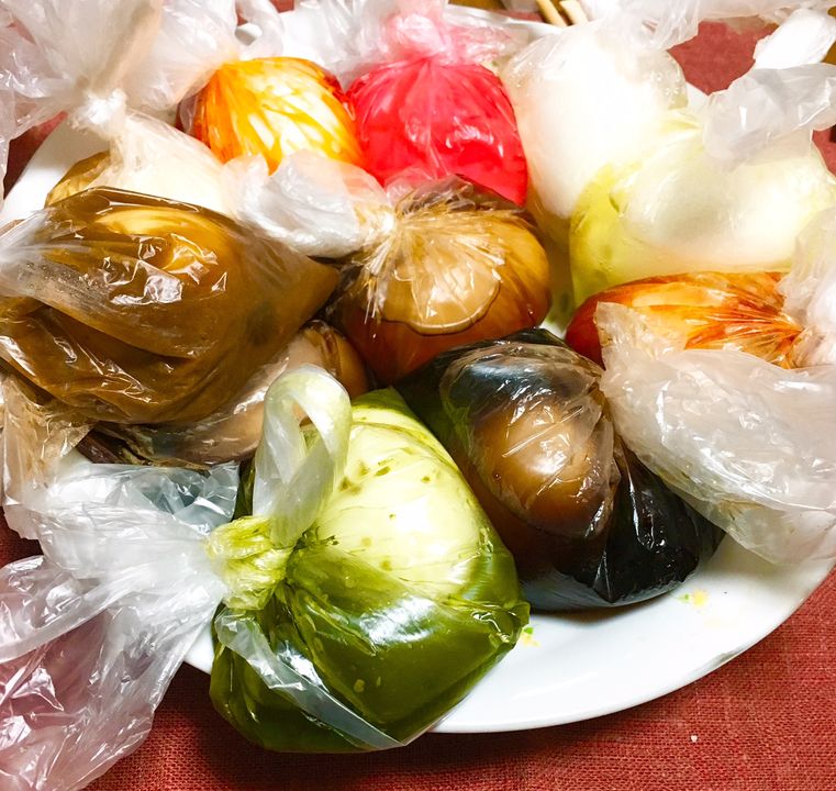 まず、レシピに従ってゆで卵を作る。密閉容器の数が足りないので、それぞれの調味料と卵をビニール袋に入れて漬け込むことにした。