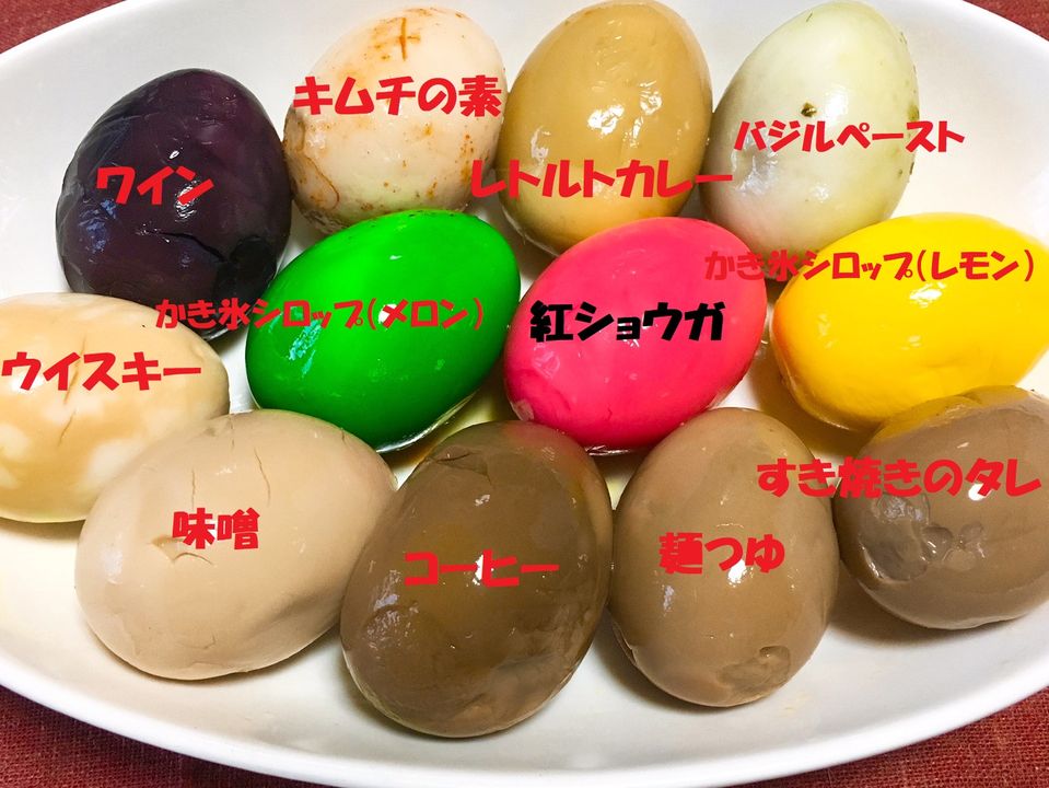 目にも鮮やかで、まさに色とりどりの“煮卵”たち。