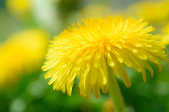 見てください、この毛並!タンポポの黄色とかすかに草の緑も感じられる爽やかな色合い。