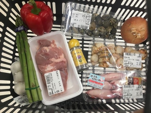 見よ。「これからパエリアを作ります」と言わんばかりのカゴの中。