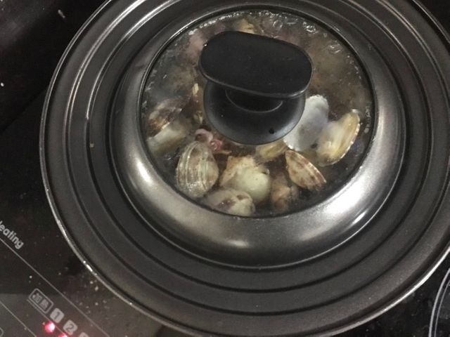 あさりの砂出しは、50℃くらいのぬるま湯でやると早い。30分くらいでできます。