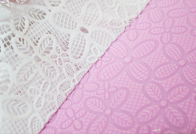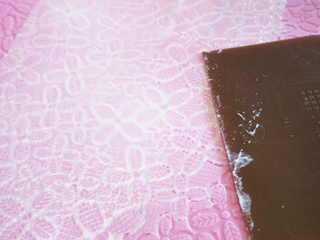 ウエディングケーキの側面にレースの模様がついていることがありますよね?あれです。