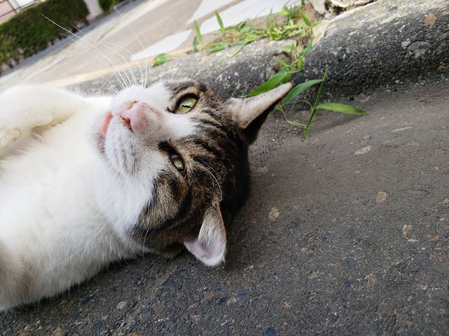 ちょうどいい所に、野良の猫が無の表情で空を見つめているではありませんか。