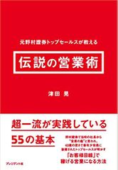『元野村證券トップセールスが教える 伝説の営業術』(津田晃著、プレジデント社刊)は、野村證券で当時の社長から「営業の鑑」と言われ、43歳の若さで最年少役員に抜擢された著者の津田晃氏が、常々実践してきた習慣や体験、考え方など、図解を交えて「お客様目線」で稼げる営業になる方法を紹介する一冊だ。