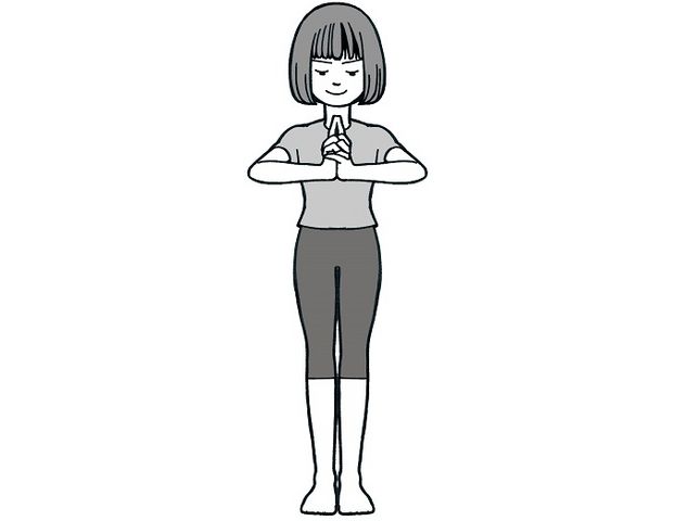 忍者が呪文を唱えるときのように、胸の前で両手を合わせ、人差し指を立てる。そのまま両手を目いっぱいの力で押し付け合い、胸や腕の筋肉がぷるぷると震え始めたら終了となる。