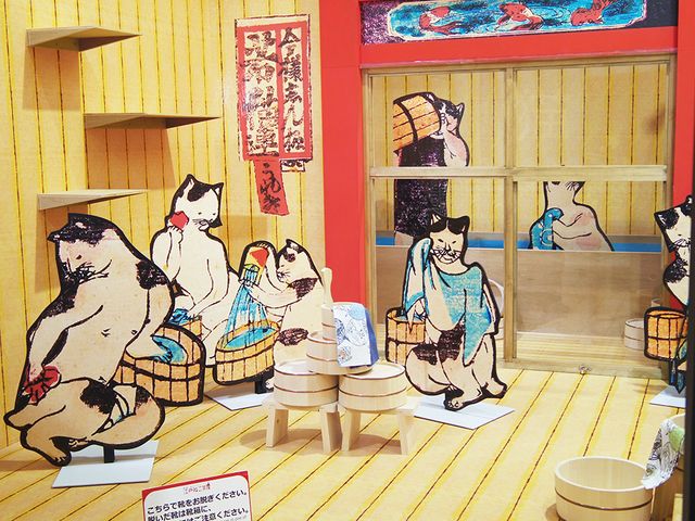 浮世絵の猫たちは気持ちよさそうに入浴中。