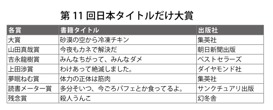 秀逸な本のタイトルを決める“日本タイトルだけ大賞” 今年は『砂漠の空から冷凍チキン』に