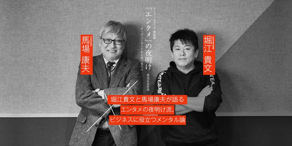今回のゲストの一人である堀江氏と、『「エンタメ」の夜明け』の出会いは20年以上前に遡る。1996年、馬場氏自身が企画し、インタビュアーも務めていたラジオ番組に堀貞一郎が出演。東京ディズニーランド誘致のいきさつを語り、大きな反響を呼んだ。その放送を、堀江氏は自動車を運転しながら聞いており、印象に強く残ったという。