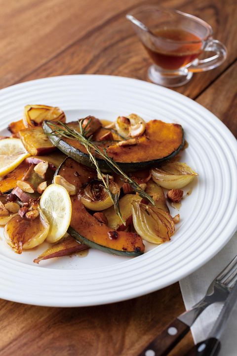 ①カボチャ、さつまいもは皮ごと洗い、食べやすい大きさに、小タマネギは皮を取り除いて縦半分にカットする。アーモンドとカシューナッツは粗く刻む。