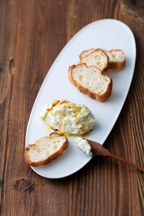 ②器に盛り、しょう油とオリーブ油をかけ、バゲットを添える(お好みでスティック野菜を添えても)。
