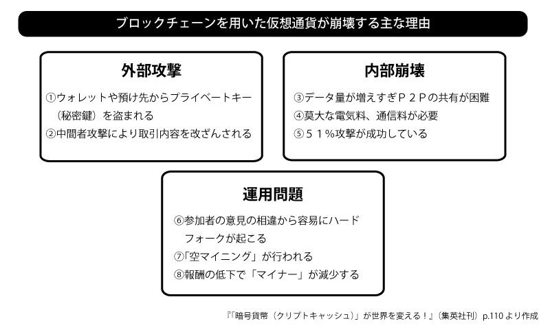 本書には、仮想通貨の崩壊の理由として8つあげています。